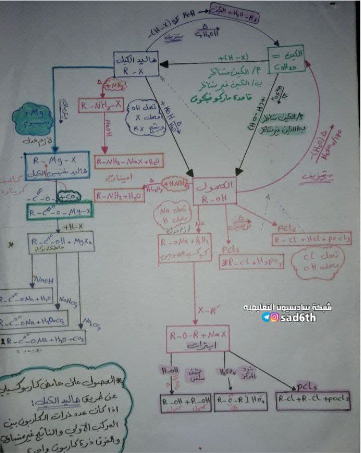لتبسيط العضويه في كيمياء السادس العلمي اليكم مخططات بديعه ومبسطه للموضوع للعام 2021/2020 للاستاذ احمد عبد السلام (مكونه من ورقتين) يعني اربع صفحات فقط ..