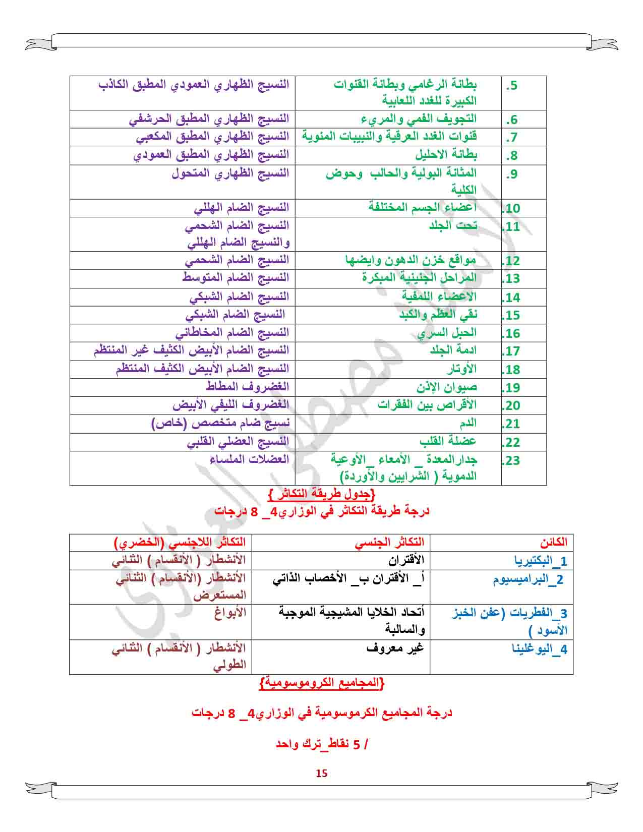 مرشحات شامل لكل مادة الاحياء المطلوبه وزارياً بعد الحذوفات للصف السادس الاحيائي للامتحانات العامه 2020-2021 الدور الاول والثاني للاستاذ مصطفى العزاوي