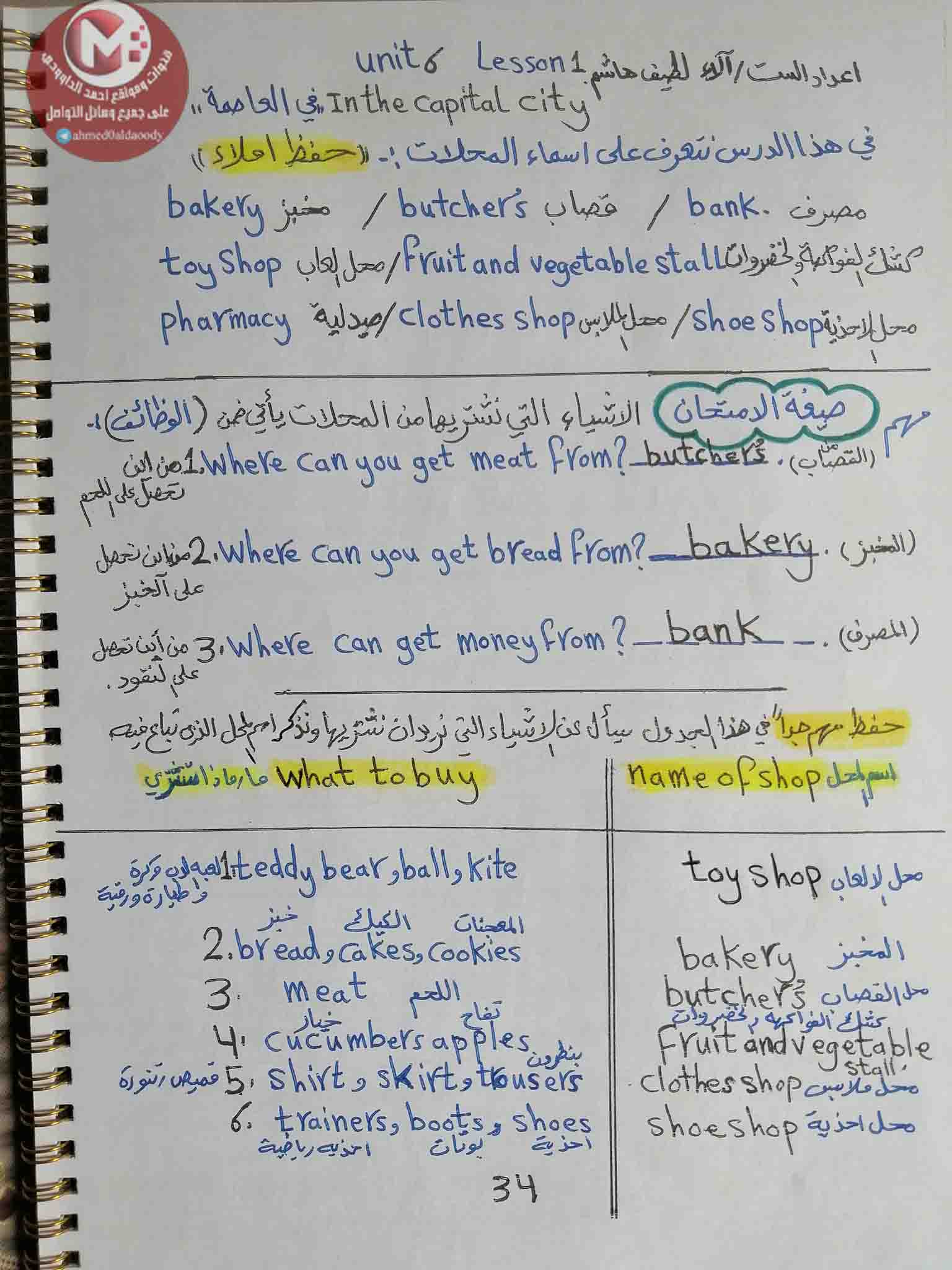 مختصر شرح اليونت السادس لصف الخامس الابتدائي من مادة الانكليزي للست الاء لطيف هاشم مكون من 5 ورقات فقط