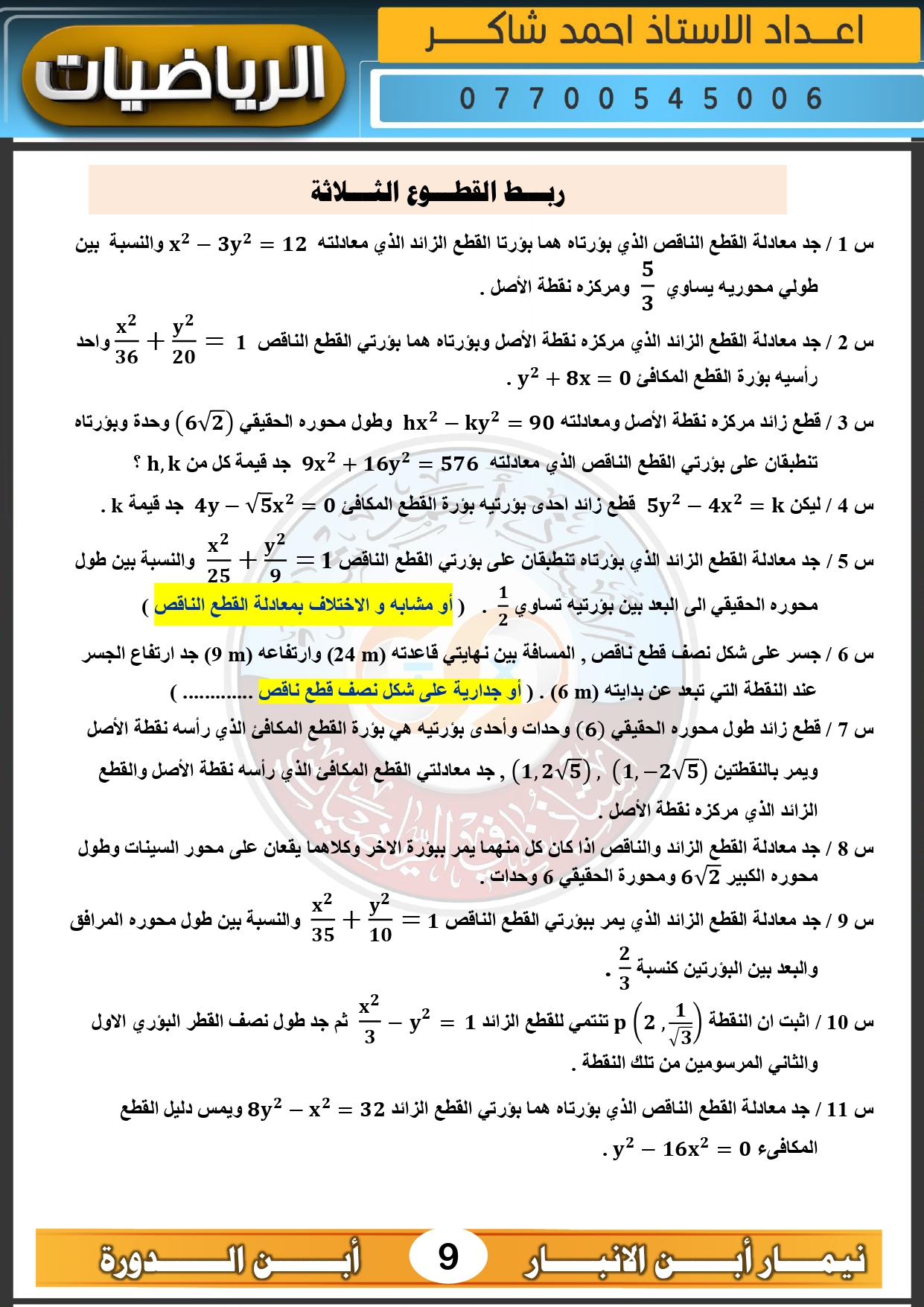 مرشحات رياضيات السادس الاحيائي لامتحانات 2021-2022 الدور الاول مكونه من 9 ورقات للاستاذ احمد شاكر