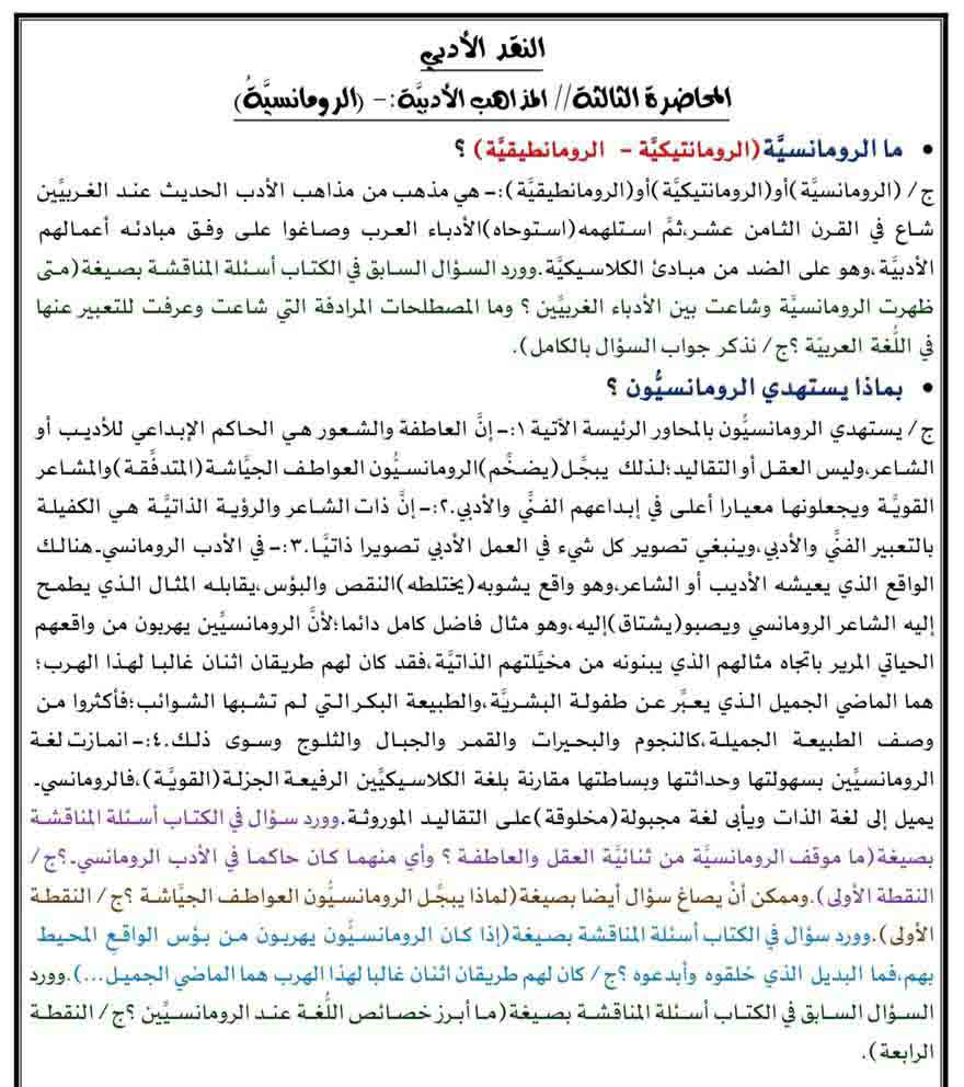 ملخص شامل لمادة النقد لصف السادس الادبي بـ 3 ورقات فقط ضمان درجه كامله