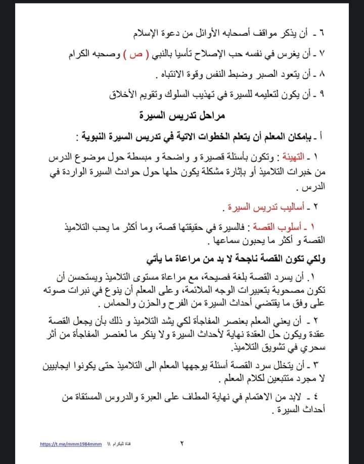 خطوت واهداف تدريس القران الكريم والحديث الشريف والسيرة النبوية لصف الخامس الابتدائيو السادس الابتدائي