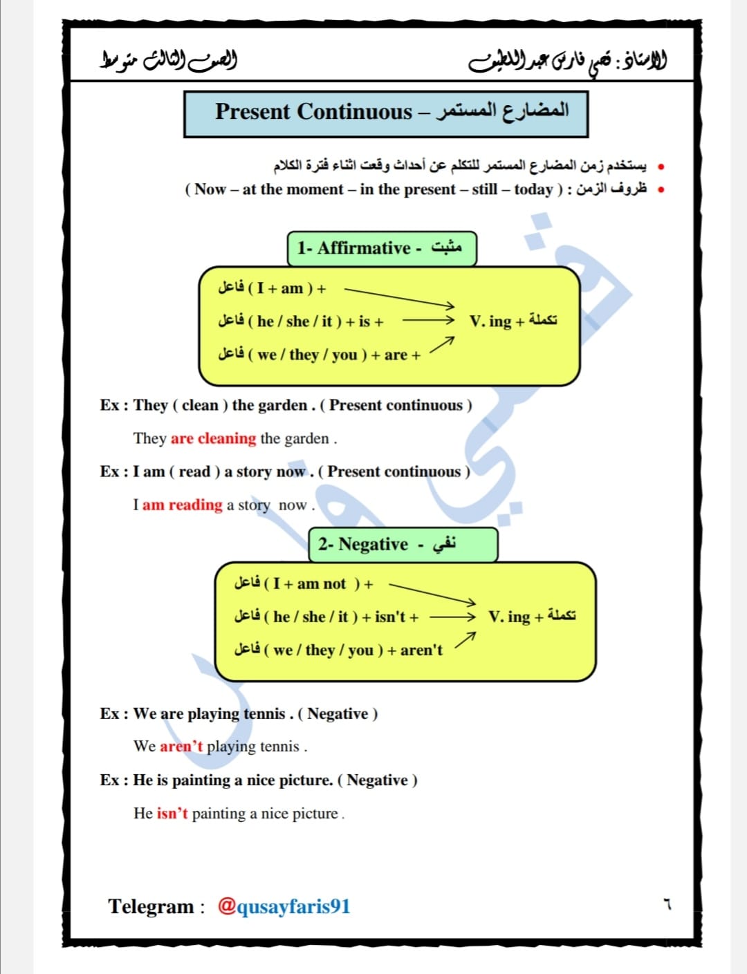 شرح ملخص لمادة الانكليزي E لصف الثالث متوسط