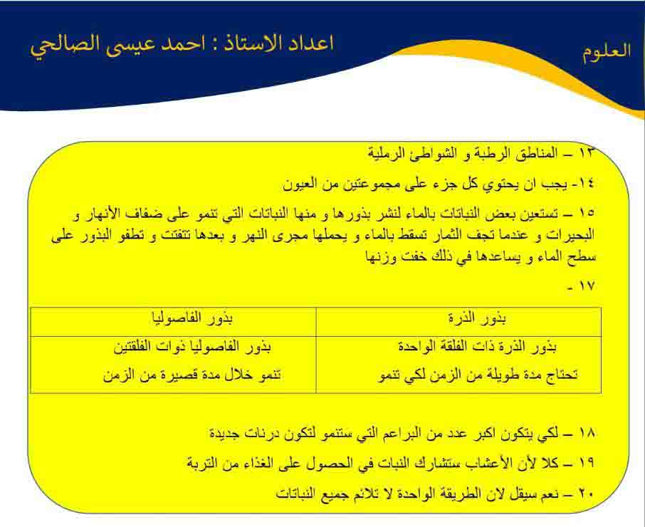 شرح ملخص في مادة العلوم لصف السادس ابتدائي الخاص بالفصل الاول الوحدة الاولى من اعداد الاستاذ احمد عيسى الصالحي .